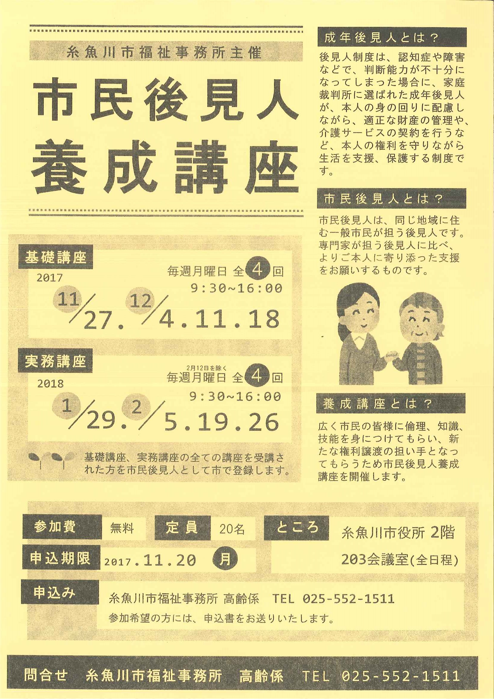 糸魚川市の「成年後見」の充実に向けて、もう一つ大切なイベントが始まります。