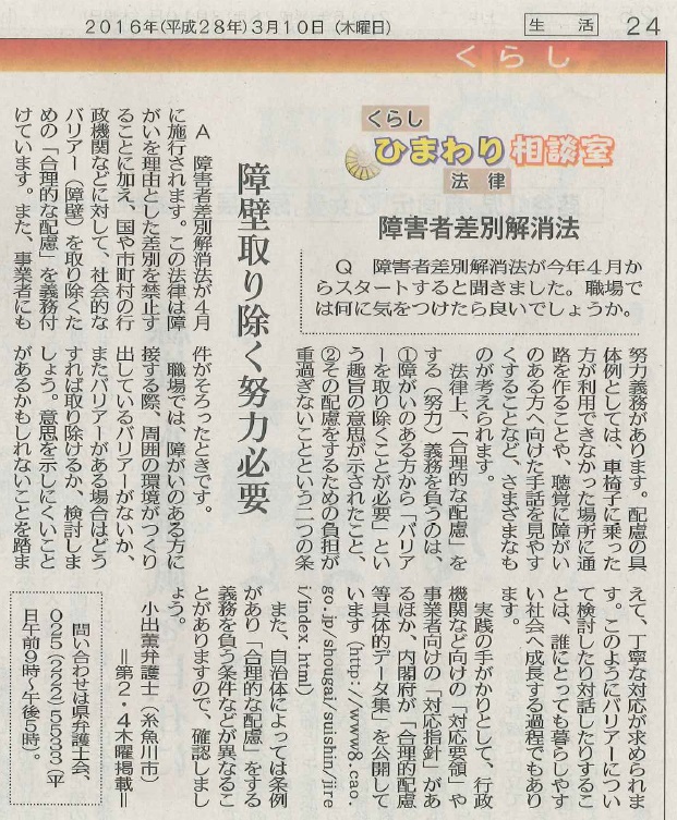 題材は、障害者差別解消法です。