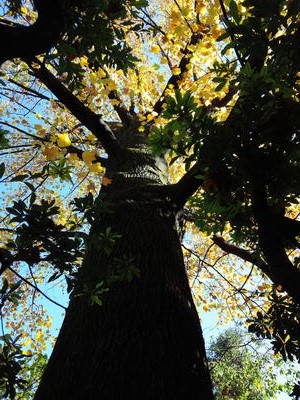 この森のシンボルツリーの一つであるユリノキを見上げると、